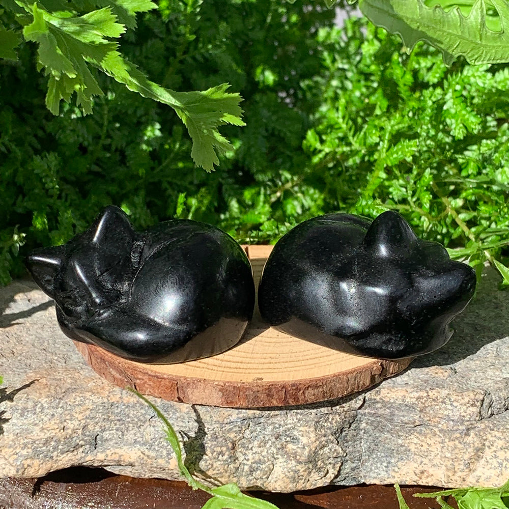 Crystal Animal Spirit Totems: Black Protection Agate Sleeping Cat